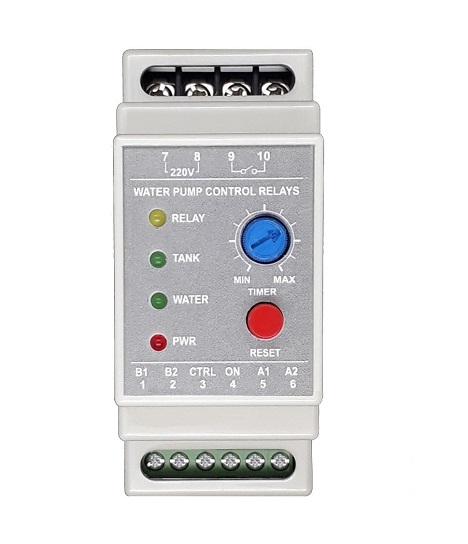 - Hoạt động như một tủ điều khiển bơm nhỏ gọn, với đầy đủ tính năng của Rơ le an toàn cho phao điện + Cảm biến mực nước + Rơ le thời gian.