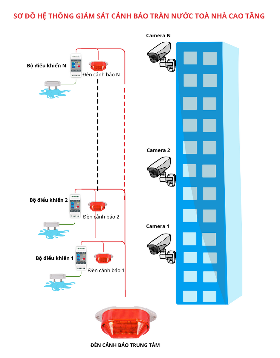 - Cảnh báo ngập nước ở tầng hầm, kho hàng...