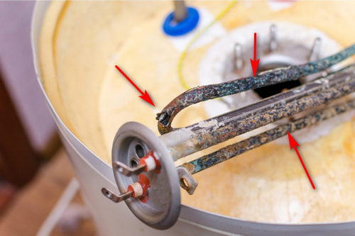 Sau khi ngắt điện, tháo rơ-le điều chỉnh nhiệt, mở gioăng bình, xả nước, tháo ruột đun và vệ sinh, làm tan sạch cặn canxi bám vào que nhiệt, súc sạch cặn vỏ bình cho đến khi nước trong.
